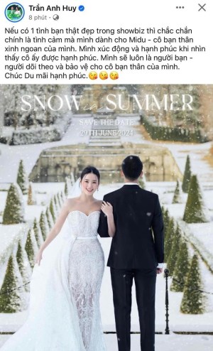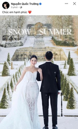“Tình tin đồn” của Midu đã chia sẻ hình ảnh cưới của Midu và gửi lời chúc phúc đến cô.