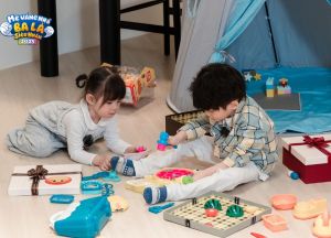 Chỉ khoảng ít phút sau đó, khi bố Hải Long và bố Tùng Sơn rủ nhau đi vào bếp, nhường lại không gian cho 2 con, 2 em bé lúc bấy giờ mới trở nên thoải mái, tương tác với nhau tự nhiên.