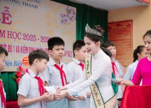 Không chỉ dừng lại ở những lời cảm ơn, Á hậu 2 Hoa hậu Trái Đất Việt Nam 2025 còn dành những món quà thiết thực cho 20 em học sinh có hoàn cảnh khó khăn, như một lời động viên tiếp bước đến trường. Cô nhắn nhủ đến các đàn em: “Chị mong các em giữ vững tinh thần ham học hỏi, nuôi dưỡng ước mơ và không ngừng nỗ lực để chinh phục những thành công mới trong năm học 2025 – 2026.”