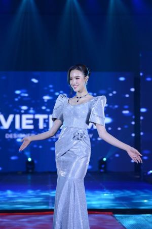 Bộ trang phục này của Hemp Oi được tạo nên từ sợi gai dầu tự nhiên, loại sợi được trồng và dệt thủ công bởi đồng bào dân tộc H’Mông, mang trong mình tinh thần của thời trang bền vững và sự hòa hợp cùng thiên nhiên. Với lựa chọn này, Trịnh Mỹ Anh mong muốn lan tỏa thông điệp về vẻ đẹp thuần khiết, ý thức bảo vệ môi trường và tôn vinh giá trị văn hóa bản địa Việt Nam – nơi mỗi sợi vải đều kể một câu chuyện của lòng trân quý dành cho Mẹ Trái Đất.