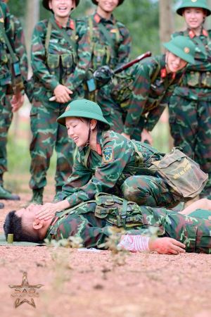 Không khí thao trường vừa nghiêm túc vừa rộn ràng tiếng cười. Anh Tú nhập vai thương binh diễn sâu đến mức giả ngất, khiến quân y Huỳnh Lập suýt làm hô hấp nhân tạo. Diệp Lâm Anh thì chú trọng hình thức đến mức… thắt nơ cho thương binh Trang Pháp. Chi Pu và Tim cũng là cặp đôi khiến cả thao trường “náo loạn”. Khi được giao sơ cứu cho “thương binh Tim bị rắn cắn”, Chi Pu hỏi thẳng: “Có cần cởi không?” khiến mọi người ngỡ ngàng. Trong lúc Tim “than mất cảm giác tay trái”, Chi Pu vẫn điềm tĩnh trấn an và kết thúc bằng lời khẳng định: “Đồng chí sẽ ổn thôi, tin tôi đi!”