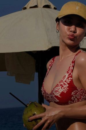 Trong cuộc đua này, Văn Mai Hương là cái tên gây chú ý khi tung loạt ảnh đi biển tràn đầy năng lượng. Nữ ca sĩ lựa chọn bikini họa tiết đỏ nổi bật kết hợp cùng mũ lưỡi trai đơn giản, mang đến tổng thể vừa trẻ trung vừa quyến rũ. Làn da bắt nắng cùng thần thái tự tin giúp cô ghi điểm mạnh, đặc biệt khi đây là một trong những lần hiếm hoi Văn Mai Hương diện bikini nhưng lại khiến khán giả bất ngờ trước vóc dáng ngày càng thăng hạng.