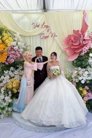 Qua những khoảnh khắc hiếm hoi được đăng tải, chú rể rạng rỡ, liên tục nở nụ cười hạnh phúc trong ngày trọng đại. Hậu Hoàng và Dương Hoàng Yến lựa chọn áo dài nổi bật, trong đó nữ YouTuber gây chú ý với mái tóc vàng cùng nhan sắc ngày càng thăng hạng. Đáng chú ý, cô còn thoải mái “tái hiện” khoảnh khắc kề vai bá cổ từng gây sốt với Mũi trưởng Long trước đây. Không khí buổi tiệc trở nên vui vẻ khi Hậu Hoàng liên tục pha trò, tương tác thân thiết với cô dâu, cho thấy mối quan hệ gần gũi giữa tất cả mọi người.